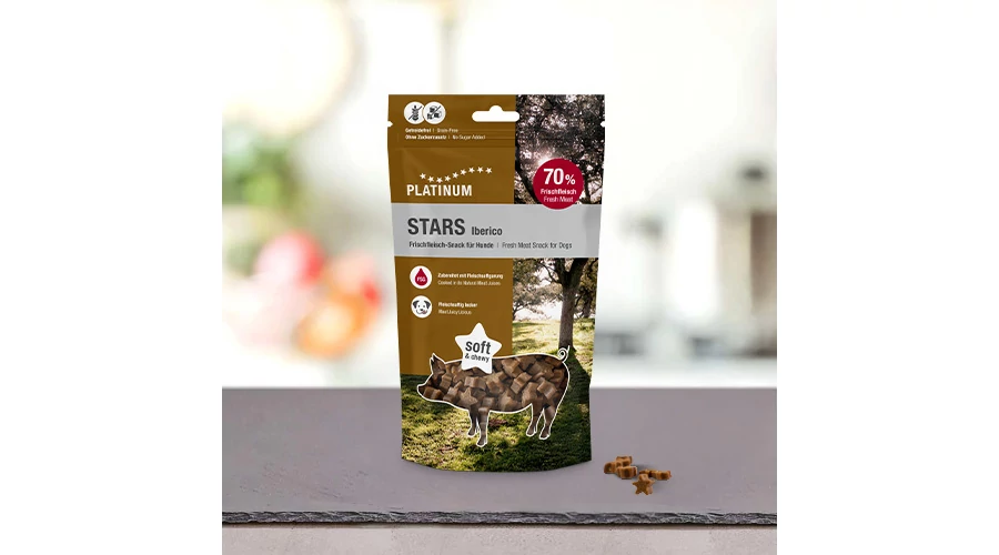Hogy az ételallergiában és intoleranciában szenvedő kutyáknak ízletes alternatívát kínáljunk, minden PLATINUM Stars Snack falatka* 70% friss hústartalommal és kizárólag válogatott összetevőkkel rendelkezik.