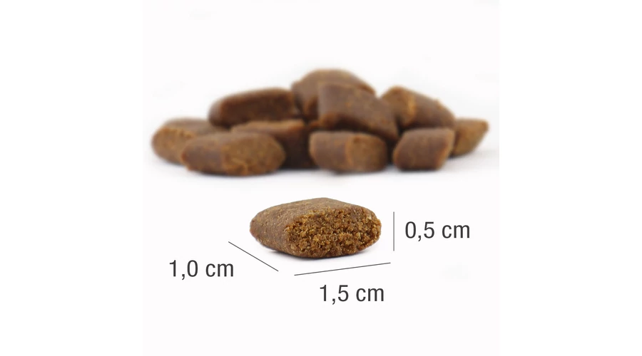 A száraz kutyatápot meg lehet nedvesíteni vízzel, vagy adható szárazon is. Ne áztassa be, azonnal kerüljön fogyasztásra. A gyártási eljárás és az összetevők miatt a táp nem duzzad meg, mivel nem vesz fel nedvességet. A táp a gyomorban sem duzzad meg, nem okoz puffadást és nem erjed. Kérjük, hogy mindig tartson készenlétben kutyája számára friss vizet.
